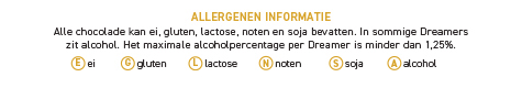 De 80-pack assorted Dreamers bevat een combinatie van melk, witte en pure Dreamers (8 varianten). Met afwisselende vullingen zoals amandel nougat, coffee caramel en pecannoten biedt dit voor ieder wat wils.